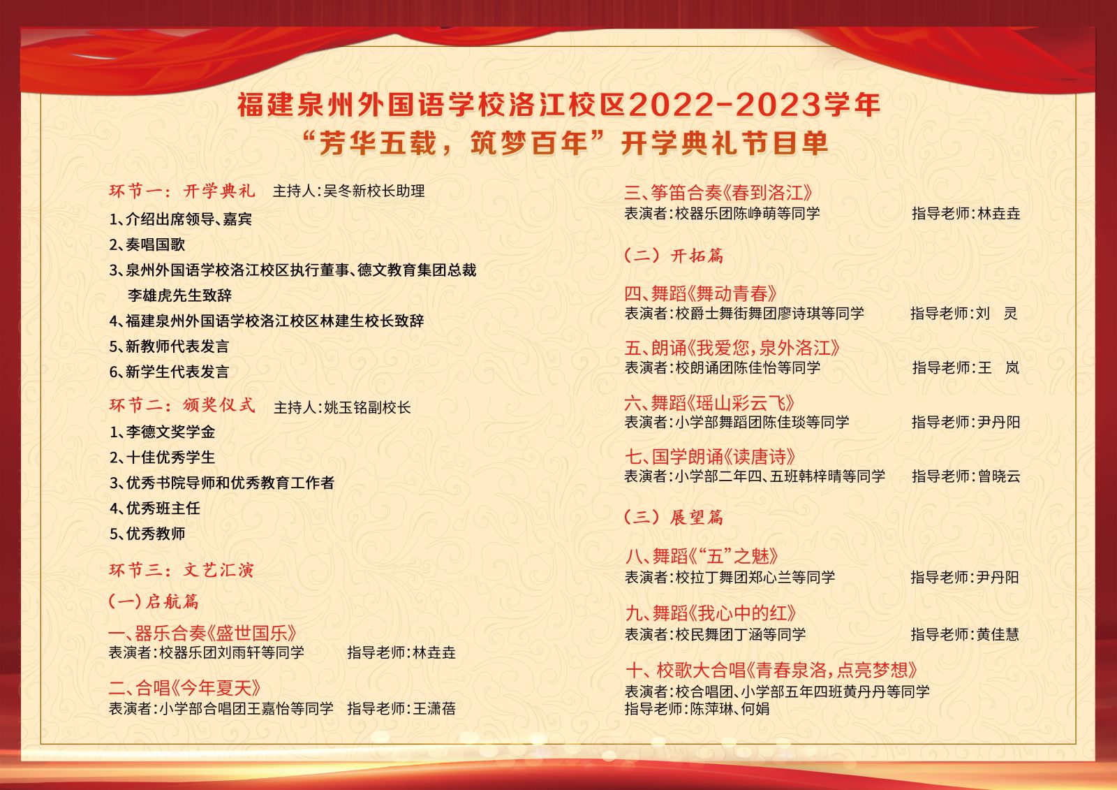 直播:泉州外国语学校洛江校区2022-2023学年度开学典礼暨第二十二届李德文奖教奖学金颁奖晚会